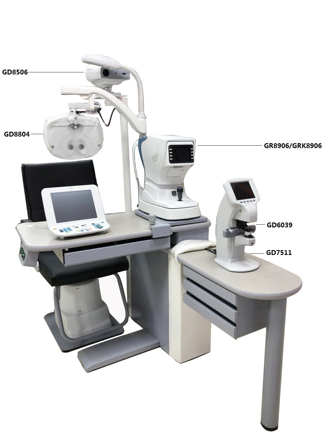 1नेत्र चिकित्सा इकाई -GD7511: फोरोप्टर की बांह ऊपर-नीचे की ओर हो सकती है, घुमाया जा सकता है; लेंसमीटर की जगह के लिए एक अतिरिक्त तालिका;